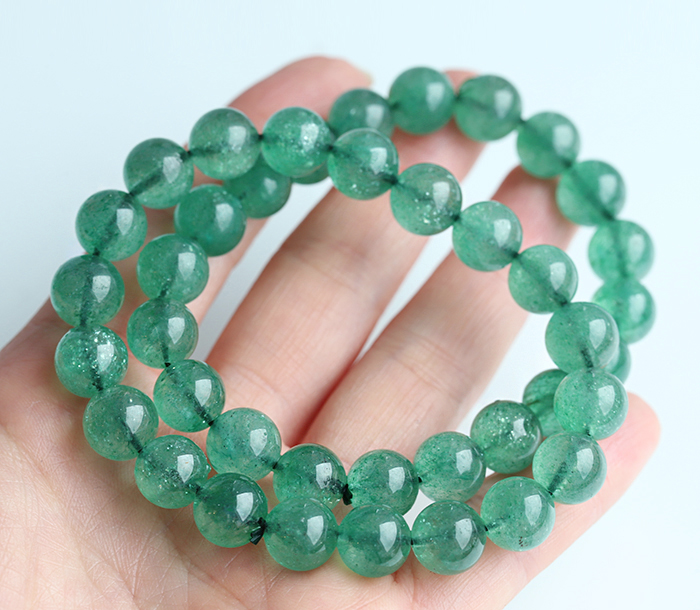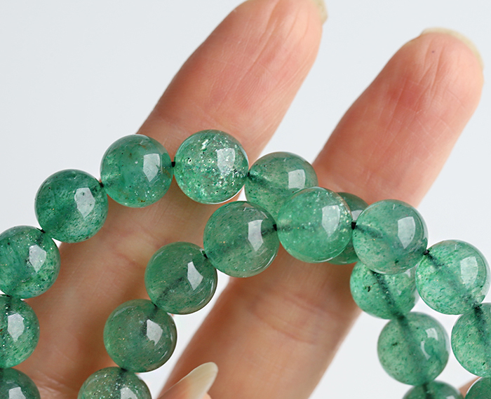 こちらは染色のないアベンチュリンのブレスレットです 鉱物名「グリーン・アベンチュリン・クォーツ・シスト」=リアルアベンチュリンは、なかなか取り扱いがない貴重なクリスタルですm(__)m アベンチュリンは、以前から、リクエストが多かったのですが、なかなか取り扱いができないストーンでした ご紹介までに至れる条件を満たしているものが無かったためです。 そんななか、こちらはまぶしいほど輝く、素晴らしいアベンチュリンでした♪ 鑑別の結果は透明な含浸処理のみでした。 アベンチュリンは当店でもロングセラーで大人気なのですが、リアルアベンチュリンは、とてもとても希少性が高く鑑別師も「それはみなさんが思っているよりもずっと貴重で稀なものなのです」と説いています。 アベンチュリンは、和名を「砂金水晶・砂金石英」と申しまして、様々な色合いがあります。 本物のアベンチュリンには定義がございまして、キラキラとしたアベンチュリンレッセンスが確認できなければ、鉱物名は「グリーン・クォーツァイト」となります。それは、このキラキラとした光学効果に対してつけられた呼称だからなのです。 現在、流通している多くのグリーン・アベンチュリンはこのキラキラした雲母(フックサイト)が入っておりません。 たとえ多少のフックサイトを含んでいてもばらつきがあったり、キラキラとしていないと、「グリーン・クォーツァイト」となってしまいます。 クォーツァイトは翡翠の代用としても広く使われておりまして、アベンチュリンには染めやガラスも流通しているため、定番ながら取り扱いが困難でございました。 ビーズにしておよそ8割以上の珠にアベンチュリンレッセンスが見られますm(__)m アベンチュリンのもともとの由来は、紫褐色のヘマタイトを含んだものでしたが、グリーンアベンチュリンが、アベンチュリンを有名にしたのも事実です。 グリーン・アベンチュリンは金運や人間関係、家庭運まで底上げするクリスタルで、愛が深まり、寛大さが養われるといわれています。問題解決にも役立ちますので、子育て中でも穏やかでいられます。 本物のリアルアベンチュリンはなかなか入手が困難です。 色も今の季節にぴったりの爽やかな鮮緑で明るめのグリーンです。 輝きも眩しくて、運気UP間違いなしの風合いです。