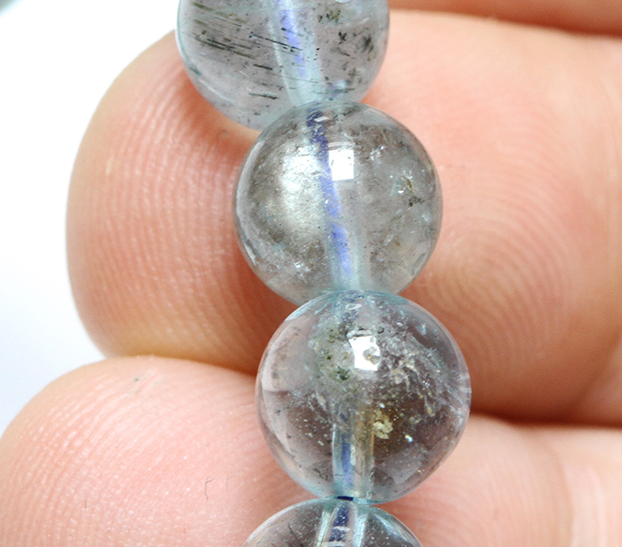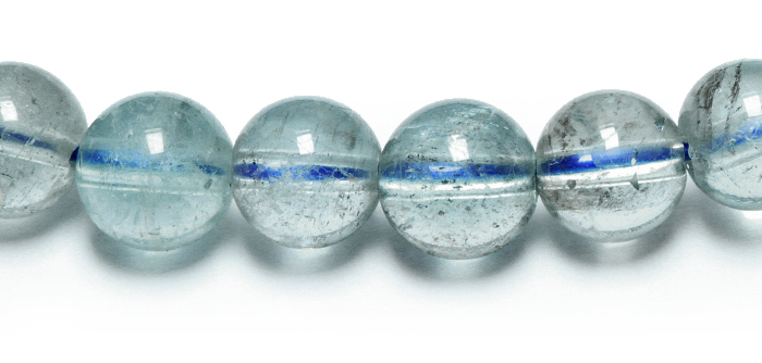 ベリルの結晶は柱の方向に平行に繊細な筒状のインクリュージョンが発生しやすく、その原石を丸く加工するとこのようなキャッツやスター効果があらわれるのです。