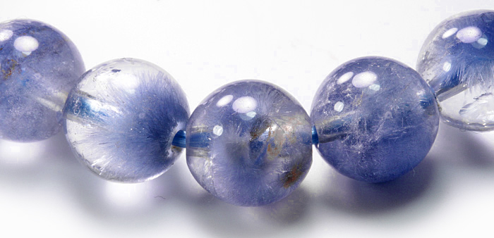 限定!激レア!今、どこに行っても超話題のデュモルチライトインクォーツ(ロイヤルブルーガーデン)の約10mmブレスレットが入荷しました 話題沸騰で、どこに行ってもこの石の話がやまない状態のデュモルチライトインクォーツですが、大きめの玉は大変めずらしいことです 特にこちらは、写真を撮る方がいらっしゃるほどキレイに内包されたブレスレットで、SAランクの中の最高品質になります。花が咲いたような風合いから、貫入水晶まで、多くの風合いが楽しめる贅沢なブレスレットです♪ 現在このクリスタルは原石の状態でも、g=2万円前後で取引がされておりまして、ダイヤモンドよりも高価ながら、瞬殺で完売してしまう状態です。 次回入荷の予定はなく、その希少性からお探しの方も多いのですがこういった素晴らしいクオリティのものは、今後入手が難しいものになりますm(__)m 最初、この石はブラジル産という話がでておりましたが、加工をしている海外業者によれば、これはアフリカ産だということです。 それはこの石を持ってくる業者がスギライト等を扱うアフリカの業者だからだそうで、これは事実ということでした。 この石はもともと表面がマットで、中の美しさが見えにくい鉱物です。 そのため、多くが磨きに出されますが、はじめてこの石が流通したての頃は、染色ではないかということでした。しかし鑑別の結果、間違いなく天然だということで、その後、飛ぶように売れたものです。 一度完売したあと、もう一度入荷したのですが、その最、一番最初に入手したものですので、一番綺麗なものになります。 青い石が好きな方にはたまらないこのクリスタルは次回入荷の目処がたっていません。 この石の原石はもう採れていないそうで、製造できないと言われているためです。