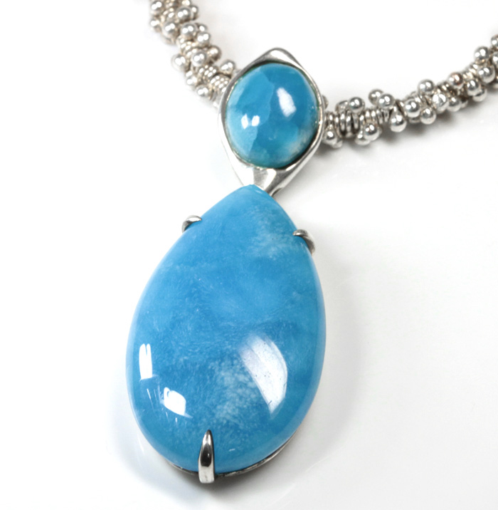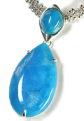 限定1個!稀に見る極上の品質のヘミモルファイトのペンダントが入荷いたしました レアストーンとして、本物をお探しの方が多いヘミモルファイトですが、ここまでの品質ははじめてのことで、通常、このクラスは見かけることはできません。 素晴らしい濃さと大きさをたたえた、最高のヘミモルファイトは、まるで水の妖精の女王がつけていそうな風格と、可憐さでした。 そこで当店オリジナルのシルバーペンダントに仕上げて、「フェアリークイーン」ペンダントと名づけ、オリジナルネックレスとしてご紹介いたします♪ 本来、この販売価格はここに使用しました、雫型のヘミモルファイトの仕入れよりもお安いお値段です。通常売価は48万円前後といわれ、他ではこの価格では 絶対にお求めにはなれませんm(__)mそのため、今後は、お目にかかれない価格と品質の大特価ヘミモルファイトペンダントです ヘミモルファイトは和名を「異極鉱」といい、この名称は、結晶の伸長方向の両端面でその形状が異なって対称性を欠く状態の「異極像」から名づけられました。これはトルマリンと同じような結晶の形で、通常は無色透明ですが、鉄や銅を含み、白っぽいグリーンからグリーン、スカイブルー(水色)から、さまざまな青の色相、無色、白、白っぽい黄色、茶色、灰色などを含みます。 角柱形、また平らなヘミモファイト水晶、扇の形の集合、塊状、粒状、鍾乳石、薄い平らな横じまのある結晶、葡萄状の外観形状や外殻表皮などの形状に結晶し、完全で大きな結晶原石はまれで、かつては、スミソナイトのことをヘミモルファイトと呼んでいました。 この鉱物がヘミモルファイトとして報告されたのは、1853年にA.ケンゴットによってでした。シンメトリー(左右対称)の水晶の構造に因んで名づけられ、それより以前には、18世紀の鉱物学者によって、「電気カラミン」という名前ですでに知られていました。 硬度は4.5~5で非常に弱いため、処理が施されることがございまして、さらに染物のほか、似た鉱物が多いため、様々な鉱物と、混同されがちです。こちら はナチュラルで何も施していないため、多少の凸凹もございますm(__)mまた、強い衝撃は与えないでくださいm(__)m このクリスタルは自己中心主義を減らす、セルフパワーの状態を保つ事を容易にする一方でエゴの無い精神状態を実現させ、幸福や、不幸の責任を取る事を可能にさせ、個人的な現実を創造し、認知と自覚両方の力など、 実用化と感受性の顕現を提供し、敵対心や怒りの感情を静め、感情の苛立ちを収める石として、パワーストーンの信仰的或いは暗示としての意味から求められ支持されている石です 挑発刺激の根本原因や深刻化した過程に対する理解力を、将来、似たような体験をしたときに人が簡単に識別できるよう一層強化する、などとも云われています。 透き通った、蛍光ブルーの青が美しい上質のペンダントです♪ ヘミモルファイトは、さらに魔よけと、向上心と勤勉さをもって行動することができるようになり、優しさで満たされた人生が送れるよう導く力があるとされています。 このストーンの不思議なあたたかみや、優しいまなざしのような風合い、そして見えない光に導かれるような、そんな気配をお楽しみください♪ 探している方が多く、とても珍しいストーンですので、次第次回入荷は未定ですm(__)m当店はもちろん特価でどうぞ♪