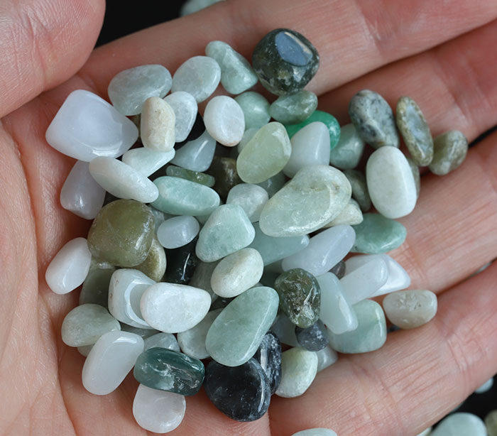 とても珍しい、翡翠のさざれが入荷しました♪ もちろんミャンマー産の硬玉ですが多少他の石も混じりあっています。 お安くご紹介をさせていただけますので、観葉植物に敷き詰めたりと、大変贅沢な風合いをお楽しみいただけます♪ お手洗いに飾られたりしてもとても素敵です♪ 翡翠は、昔から高貴な人の象徴でもありました。現代の暗示としては、営業をされる方にオススメで、人徳と、人気、そして富をもたらし、自分に自信をもたらすともいわれています。 翡翠は同じ風合いが無いストーンですので、完売後は次回入荷は未定となっております。 あこがれの翡翠を特価でご紹介いたします。 |