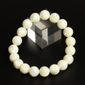 こちらはマザーオブパールのブレスレットです♪ 真珠を作る為の貝殻から作られているマザーオブパール(白蝶貝)は、古くから世界中で、装飾品や日用品などに使用されていました。 養殖真珠ができる母貝をビーズにしたものがこちらになりまして、天然の貝なのですが、色を白くするためにもしかしたら漂白処理がされているかもしれませんm(__)m ところどころ、美しく光るビーズにうっとりしてしまいます♪ マザーオブパールには母の愛や、力が宿り、優しく包み込む波動があります。 そのため、優しさや愛、母性のほかに、母になる機会を与えてくれるといわれますので、結婚願望のある方にも向いています。きっと素敵なお母さんになることでしょう。 できる限り高品質なマザーオブパールをお選びしておりますが、品質の維持が難しいクリスタルですm(__)m