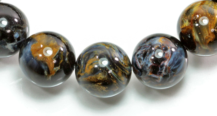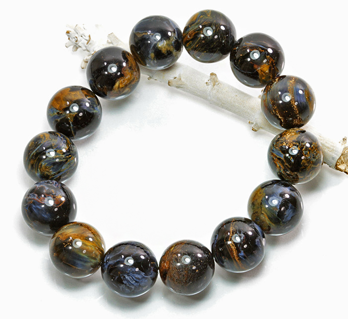 限定!最高品質が初入荷しました 魅惑の『嵐の石』ピーターサイトのレッド・ブルー・イエローカラーのAAAランク14mmUPブレスレットが入荷しました 天然のレッドタイガーアイを楽しめる唯一のクリスタルであり、霊的な仕事、ヒーラーに絶大な人気があり、混乱と怖れを鎮め、他者のエネルギーによる疲労感を解消します。 実に魅惑的なピーターサイトの高ランクブレスレットが初入荷しました。 今までビーズでの高ランクは望めなかったクリスタルですので、高ランクをお探しだった方にはとてもオススメです。 もともとはタイガーアイやホークアイだったものが、地殻変動で粉砕され、石英質が接着剤の役割を果たして、再び一つの鉱物として再誕生した石です。 そのため、多くの場合、黄色や黒、茶、赤や青などの色が交じり合って発見され、タイガーアイと同じ成分です♪ 赤いタイガーアイも細かく入っているのですが、この赤い色は天然色ですからとても貴重です。 タイガーアイの赤いものは天然色はほとんど流通がございません。流通できるほど採れないからなのですが、そんなレアカラーのタイガーアイを唯一楽しめるのがこのピーターサイトなのです。 タイガーアイは地中で青から黄色そして赤に変化します。長い時間をかけて変化するため、地殻が安定して、途中で変化がとまったものはその中間色であったりします。 ピーターサイトはそういったものが交じり合っていますので、心にしみる自然の絵画のような風合いがお楽しみいただけます。 シャトヤンシー効果も見られ、マーブル状に入っていますので、タイガーアイよりは高級感があり、神秘的に見えます。そして事実、高価なクリスタルです。 はじめて私がこのストーンを見たとき、「作り物みたい!」と思ったのを覚えています。 ピーターサイトは、アフリカでとれますが、その採掘の権利を持っている会社は限られています。 そのため価格の上下があまりなく、独占的で、安値では入荷が難しいクリスタルです。 彼らはピーターサイトをとても大切に思っていて、買い入れるときも、1つずつ丁寧に梱包してくれます。 「まとめて一緒に、がちゃがちゃ入れるなんて考えられない」そうです。 不思議な異彩を放つピーターサイトは、見れば見るほど魅力的で、渋いです。 光が当たるたびに、暗い色彩の中から、浮き上がる鈍い輝きが、また、なんともいえません。男性にも大変オススメです♪ こうした石の風貌や、その生成過程から別名「テンペスト・ストーン(嵐の石)」とも呼ばれ、自らの精神の一致、瞑想の統一、そして大きくみた場合には、人類愛に目覚め、すべての人を等しく愛することができるようになるといわれます。 また、メロディ女史は、ピーターサイトを「神の王国の鍵を秘める」と述べています。それは人が生きるうえで最も不幸なことである、自らの思いこみによる不安、執着といったものを拭い、魂の美しさを悟るサポートをするからだと言います。 混乱と怖れを鎮め、リラックスをもたらし、自らの神性に気づくことで可能性の扉を開く。そういった暗示です。 加えて、他者のエネルギーの影響による疲労感を解消するといわます。 ピーターサイトはタイガーアイの何倍も高い仕入れです。また、高ランクはそうそう入荷できませんm(__)mそれでも当店ではなんとかお安くどうぞ♪
