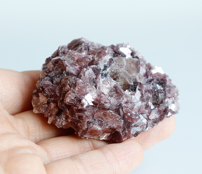 変革の力を持つ石として、近年人気のレピドライトは画像でお伝えできないのが残念ですが、雲母の効果で、きらきらとした風合いをしています。