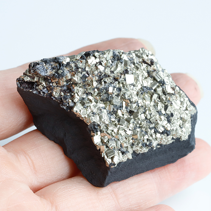 限定!ブラジル産シュンガイトwithパイライトの原石 38.4×42.2mm  【5】