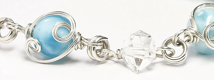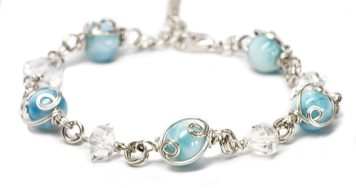 限定!天使の輪シリーズに、美しいラリマーとハーキマーを使用したシルバー925製の贅沢なクラウンブレスが入荷しました 米国ニューヨーク州ハーキマー地方だけでしかとれないハーキマーダイヤモンドの本物と、ラリマーAAAAAの8mmを使用した美しいワイヤーブレスができちゃいました♪