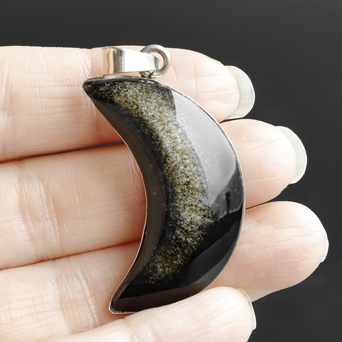 伊勢☆ゴールデンオブシディアンSAのペンダント(三日月 枠あり) 30×20mm No.3. ise22 rei