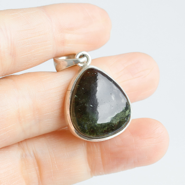 伊勢浄化☆鑑別書付き!モルダバイトのカービングペンダント【3】 18.9×16.2×7.3 ise22 rei
