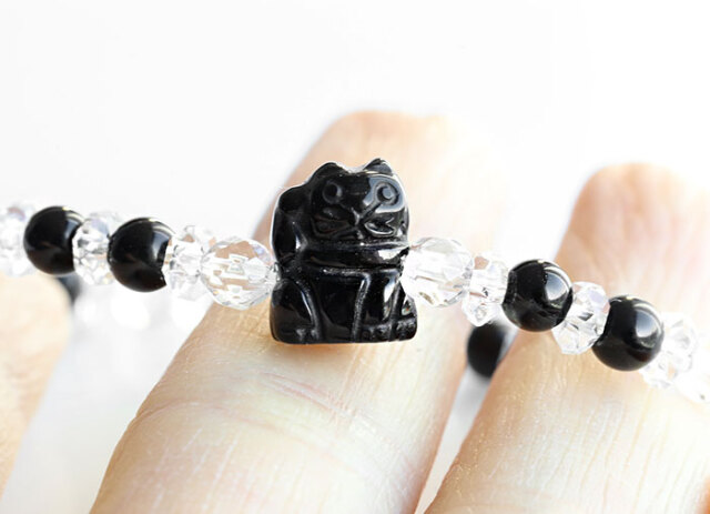 新春!伊勢浄化!招き猫の豆ブレスレット 【オニキス・右手】 ise2023