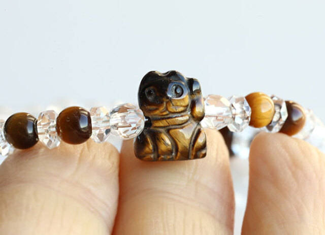新春!伊勢浄化!招き猫の 豆サイズブレスレット 【タイガーアイ・左手】 ise2023