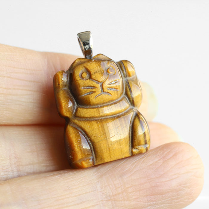 新春!伊勢浄化!招き猫のペンダント Mサイズ 【タイガーアイ・両手】 ise2023