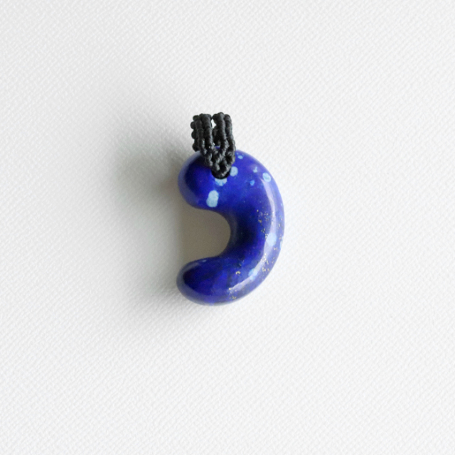 【まくらめ編み】ラピスラズリAAの勾玉ペンダント 約3cm 【2】