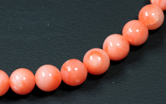 珊瑚はもともと枝の形をしたものです。至る所にヒビや穴が開いておりまして、凸凹もあるものですので、このビーズにも多くの凸凹や歪なものがございます。ご了承をお願いいたしますm(__)m