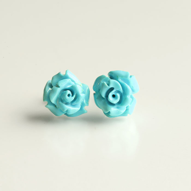 【伊勢浄化】スリーピングビューティー産ターコイズの手彫り薔薇 K18Gピアス 《15》 8.3×10.8mm susa ise11