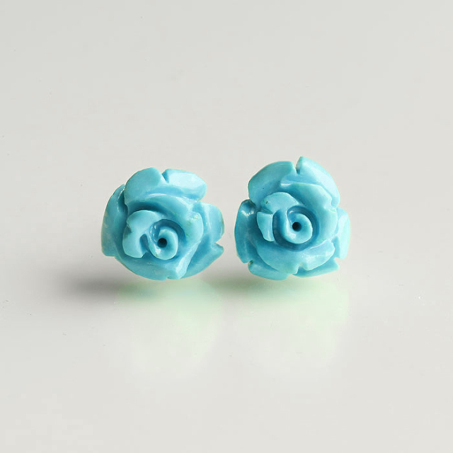 【伊勢浄化】スリーピングビューティー産ターコイズの手彫り薔薇 K18Gピアス 《7》 6.5×10.1mm susa ise11